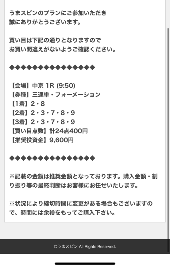 私は指定された馬券代で購入していたので